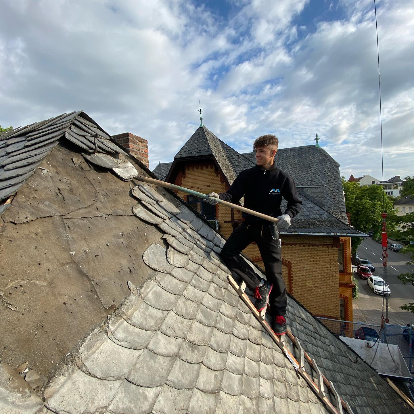 Historische Dächer erfordern mehr als gutes Handwerk – sie brauchen echte Kenntnis des Materials und den respektvollen Umgang mit gewachsener Bausubstanz. Meyendriesch-Dach arbeitet eng mit Denkmalbehörden und Architekten zusammen und setzt auf traditionelle Schieferdeckung, die dem historischen Original so nahe wie möglich kommt.
